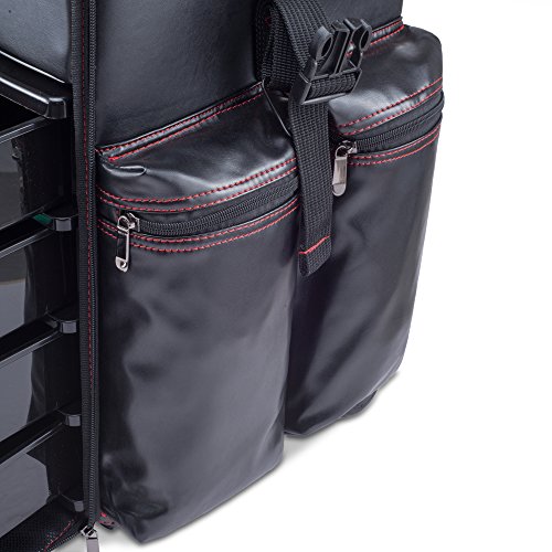 - NEVER COMPROMISE ON STYLE AND DESIGN AGAIN - Premium Heavy Duty Metal Buckles make sure the Beauty Trolley stays safe and secure at all times. Exterior includes a tissue box holder , 2 makeup brush holders, and 2 vertical zip pockets.