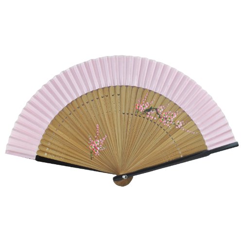 Hand Painted Plum Blossom - Pink - Bamboo Silk Folding Fan