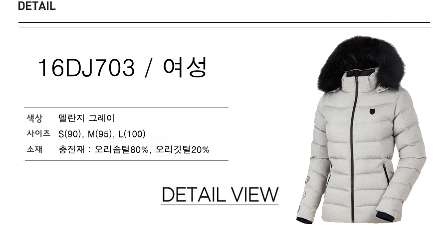 힙을 약간 덮는 기장과 프린세스 라인의 오리털 덕 다운 자켓입니다.