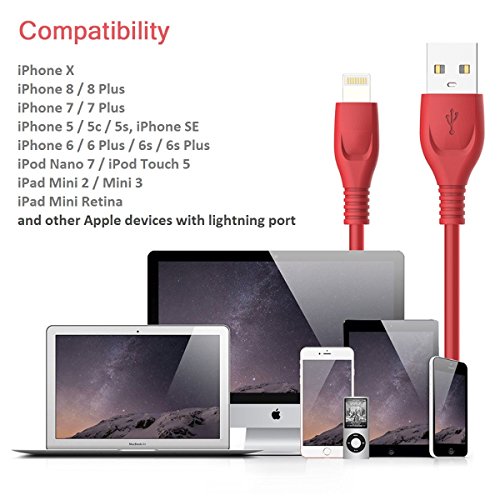 Product Description Compatibility: Compatible with iPhone X / 8 / 8 Plus / 7 / 7 Plus / 6 / 6 Plus / 5s / 5c / 5, iPad Air / Air 2, iPad Mini / Mini 2 / Mini 3, iPod nano (7th generation) and iPod touch (5th generation). /br> Package: 3-Pack 3ft iPhone Cable (White/Black/Red/Purple) 0