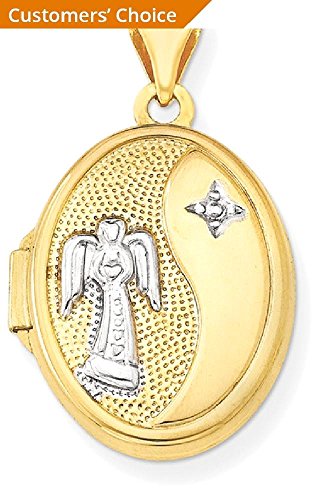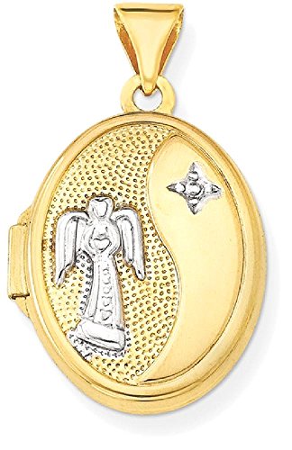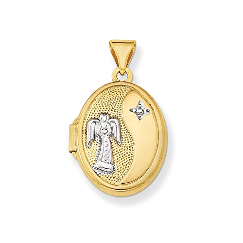 ICECARATS DESIGNER JEWELRY 14K YELLOW GOLD 17MM GUARDIAN ANGEL OVAL PHOTO PENDANT CHARM LOCKET CHAIN NECKLACE THAT HOLDS PICTURES