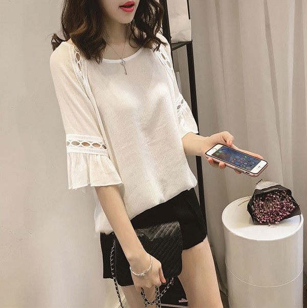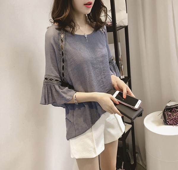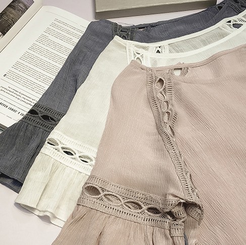 | 商品説明 | シワ加工がナチュラルな素材感のトップスです。 パンチングレースの肌魅せが涼し気でエレガント♪ |