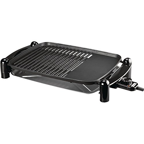 Avoid the mess and expense of grilling outside! double hot plate you can grill your meats and heat your tortillas at the same time.This 1,200-watt Indoor Electric BBQ Grill from these Appliances make indoor fat-free grilling easy. The Grille features nonstick coating, cool-touch handle and a removable adjustable thermostat control with LED light indicator.It also features a double plate where you can cook your meats and heat your tortillas at the same time. The Indoor Electric BBQ Grill is designed for easy cleaning. Weight: 7.8lbs. Dim: 3.25"H x 22"W x 12"D.Feature