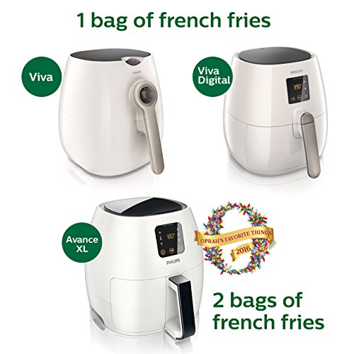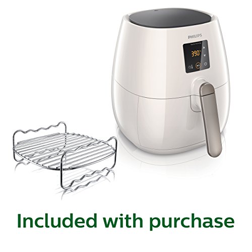 With the Philips Air fryer, you can eat healthier without giving up the taste and texture of your favorite foods. The Air fryer features unique Rapid Air Technology that circulates hot air with speed and precision for faster cooking and perfect results with less oil. Using the digital touch screen interface you can adjust the temperature up to 390 degrees and set the timer up to 60 minutes. The included double layer rack maximizes the Air fryer's cooking surface letting you fry, bake roast and grill more of your favorite foods.Feature