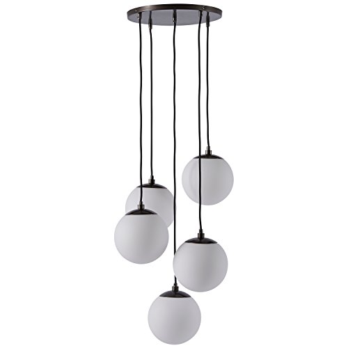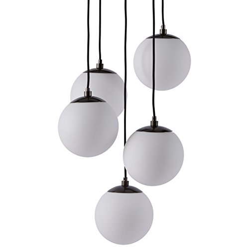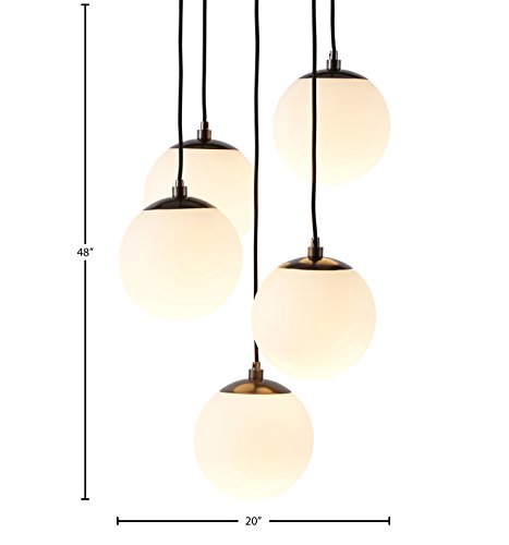 Contemporary, sleek globe pendant lights add high style and a touch of glamour to your get-togethers with friends. A round canopy with five hanging lights makes for high-impact illumination over your drinks and appetizers. Product is hardwired (professional installation recommended).