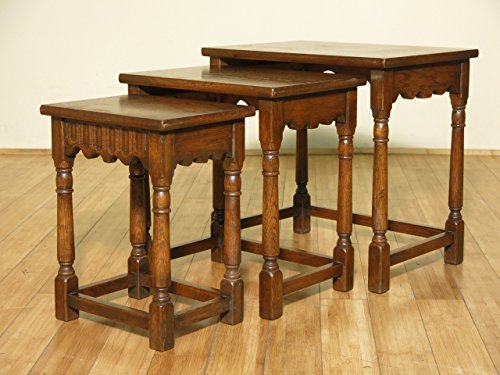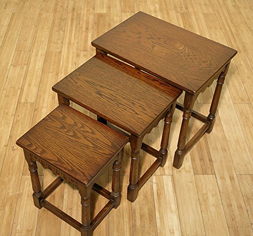 -. Title : Set of 3 Vintage Oak Nesting Tables