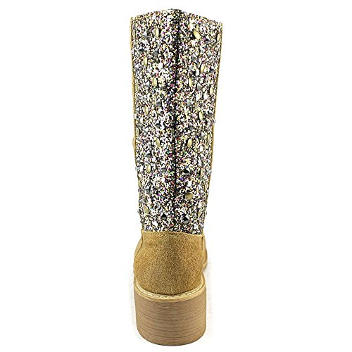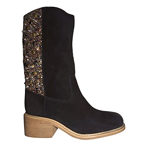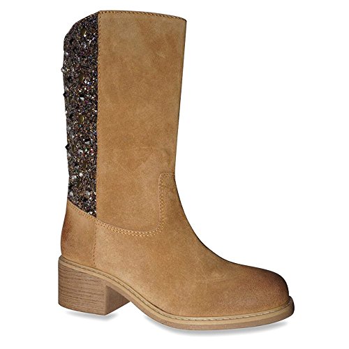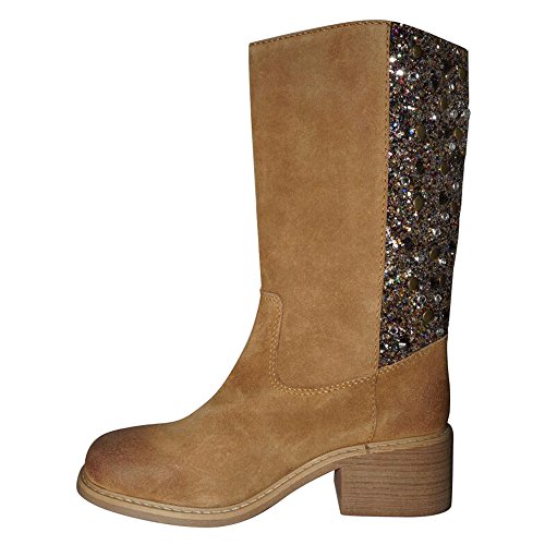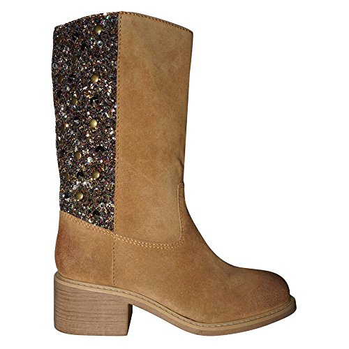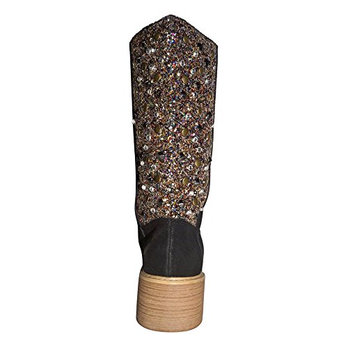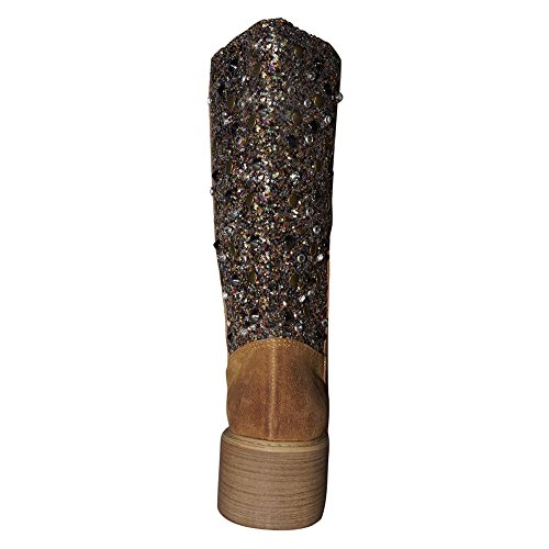 Product DescriptionWestern inspired mid calf boot with glitter detail insert at back0
