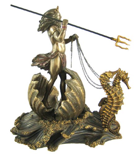 Poseidon On Seahorse Chariot Bronze Finish Statue