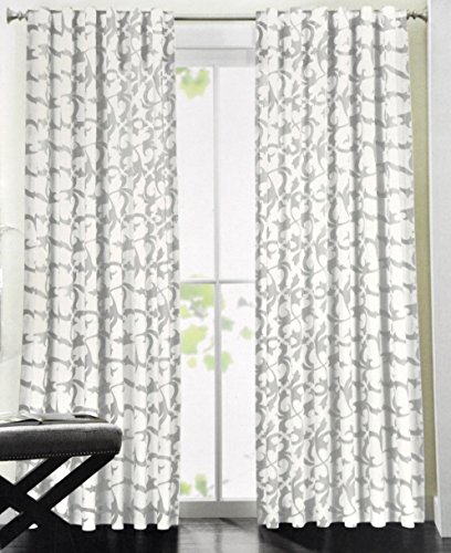Tahari Home Scrolls Window Panels 52 by 96-inch Set of 2 Floral Scrolls Window Curtains Hidden Tabs