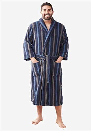 Studio : KingSize Publisher : KingSize Binding : Apparel Product Description Our luxurious big and tall bathrobe in a plush cotton terry. generously cut for a true big and tall fit 50" length in Big and 54" in Tall for great coverage classic shawl collar full-length sleeves two front patch pockets double belt loops, self belt, inside locker loop heavyweight cotton loop terry luxurious, soft cotton machine wash; imported Terry bathrobe in sizes XL/2XL, 3XL/4XL, 5XL/6XL, 7XL/8XL, 9XL/10XL, LT/XLT, 2XLT/3XLT, 4XLT/5XLT, 6XLT/7XLT ? Read more: Enter luxury. Our signature bathrobe, made with a full cut to suit any big and tall guy, represents the height of the KingSize fit tradition. Full-length cotton sleeves and long inseam mean this bathrobe offers you the breathing room you need to relax, while soft cotton construction means it's a cool, comfortable piece of clothing any night. Wear it with a pair of slippers and make sure to check out the rest of our big and tall sleepwear too. ? Reasons to Buy: This item is a big hit here at KingSize. Customers love the comfy, soft cotton fabric and the generous cut. The say it's a relaxing, great-looking piece that truly defines luxury. 0
