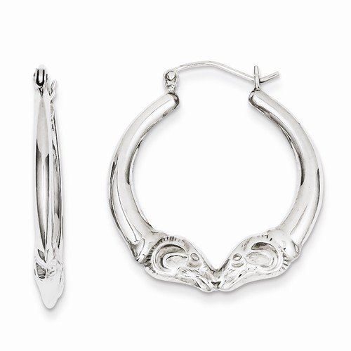 925 Sterling Silver Rams Head Hoop Earrings (25mm x 26mm)