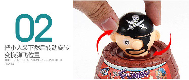 2.用手指将中间的轴压下去,放上海盗人,就可以玩了;
