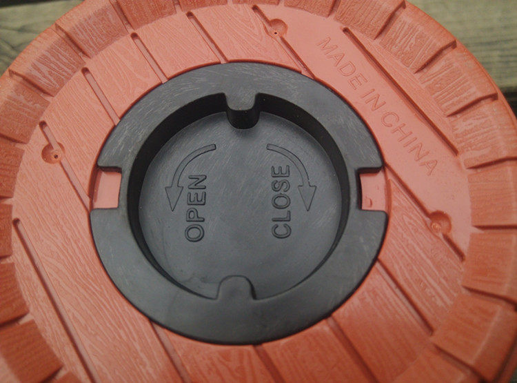 5.不玩游戏时,这桶还能当储钱桶使用,请把黑胡娃的底部对准桶底的旋盖,并向左(OPEN方向)旋转,就能把盖打开。