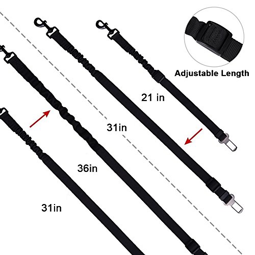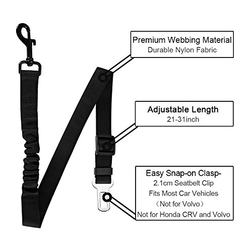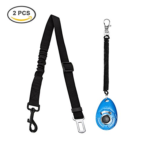 Giveet Dog Seat Belt Leash with Elastic Bungee Buffer and Dog Training Clicker, Adjustable Cat Safety Leads Vehicle Car Seatbelt Harness for Large, Medium or Small Dogs, Black, 2 of Pack