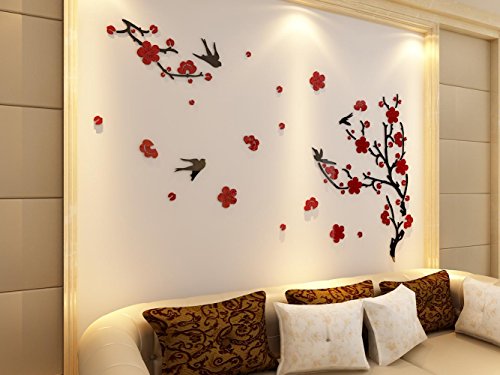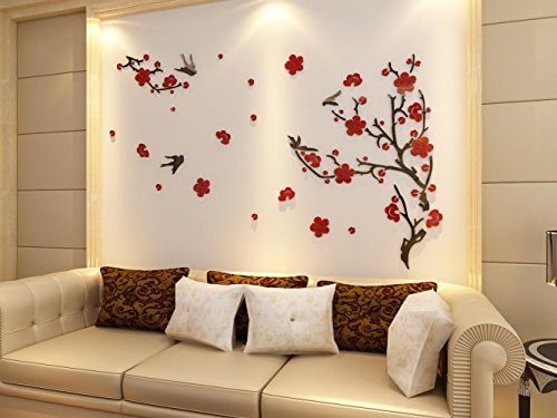 -. Title : 3d Large Plum Blossom Flower Wall Murals for Living Room Bedroom Sofa Backdrop Tv Wall Background, Originality Stickers Gift, Removable Wall Sticker Decor Decal