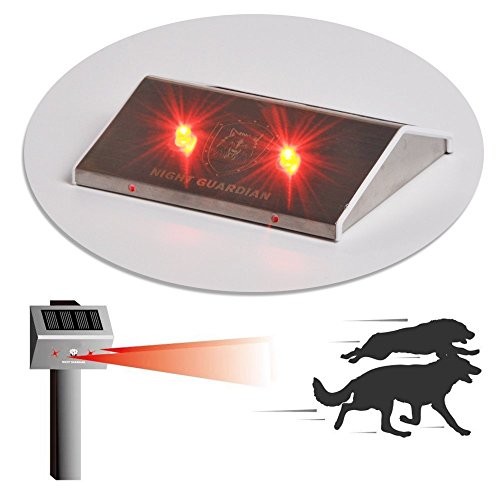 -. Feature : The night guardian is a long-lasting predator deterrent device, powered by solar, with 2 LED constantly emit red flashing light that resembles the eyes. It effectively keeps the wild animals away and protects the garden and livestock. / Night guardian utilize the solar energy during the day, store the power in the rechargeable battery, and emits red warn light during the night. So please install this light at the places that has sun exposure! / Wild predators are very watchful about the environment they are in, two red flashing light, which looks like the eyes are blinking, will make them feel that this place is not safe and run away. RED light can be seen as far as 800-1000 meters away if without any obstacle. Red light is vivid and strong. / The light covers an area of 800-1000 meters long and 250 meters wide with an angle of about 60 degrees. Adjust the angle of the light according to the terrain. Position the device at the eye-level of the animals. To reach maximum protection we recommend to use multiple devices to cover the 360 degree area. / The product can turn ON and OFF automatically. Charge in the sun for 5 hours, the light can last up to 12 hours in the night.