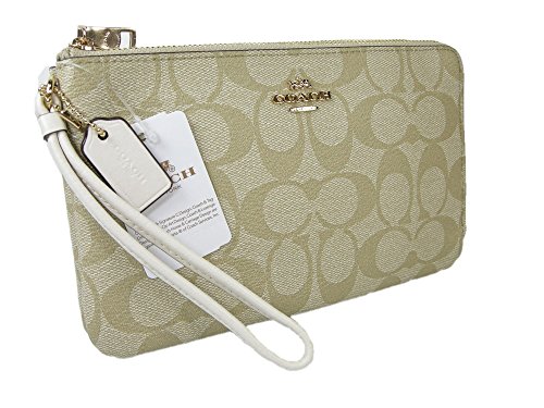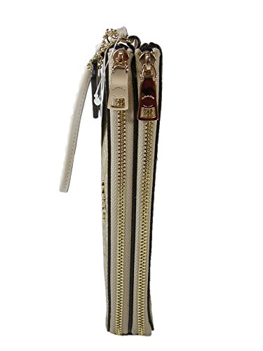 Product Description Light Khaki/Chalk PVC exterior with gold hardware. It measures approximately 7.5 x 4.75 inches. Double zip around pockets. The back zip around pocket features three slip pockets, and the front zip around pocket features 6 credit card slots and one slip pocket. Tag Information: Style No: F16109 Style Name: Signature PVC Double Zip Wallet Color: Light Khaki/Chalk MSRP: 175.00 0