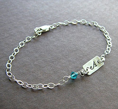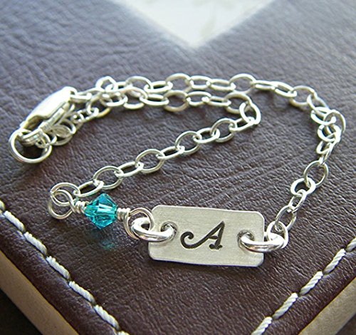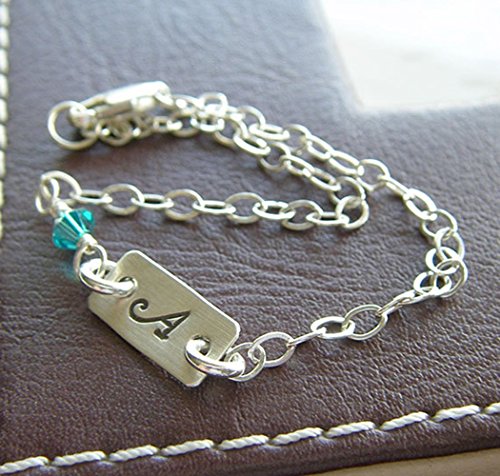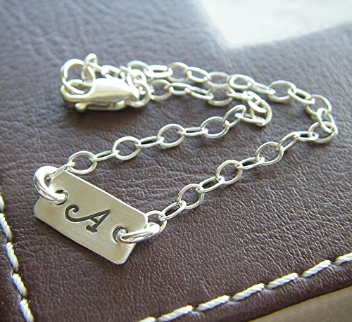 -. Title : 0.5" Initial Bar Bracelet Custom Hand Stamped Sterling Silver Personalized Jewelry