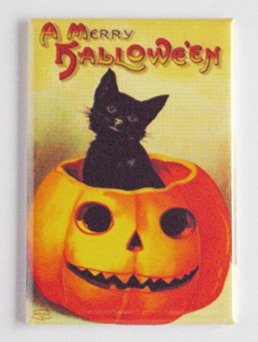 Halloween "Black Cat in Pumpkin" Fridge Magnet (2.5 x 3.5 inches)