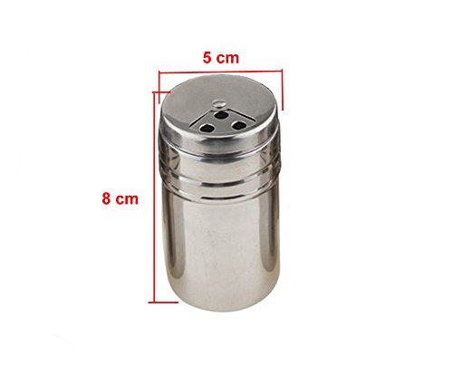 -. Feature : Food grade stainless steel,healthy and safe. / Unique kitchen storage jars for spices,seasonings,powders,herbs and seeds. / Rotate to be in full close:tight and reliable seal. / Stainless steel shaker top,twist for 4 settings - closed,small,medium and large holes. / Stainless steel material it is convenient to wash and clean.