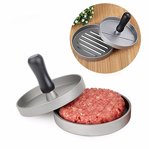 -. Feature : EASY TO USE: Our burger mold is designed and manufactured to easily create delicious and perfectly shaped hamburgers in a short period of time. It keeps your hand free from grease while grilling. / Perfect Marks: Interior ridges give your patty a ribbed surface which can create seared effect once cooked. The grooves make burgers look more mouth-watering and juicy and make you want to eat more. / SIMPLE -- Non-stick surfaces help keep patties intact during removal, and speed cleanup as well. Wash all parts by hand in warm, soapy water for years of use / Detachable solid plastic handle saves storage space when going out for picnic or outdoor BBQ / 100% SATISFACTION GUARANTEED - Customer satisfaction is our highest priority, if for any reason you are not completely satisfied with our product we will immediately provide you a full refund (or replace your item).