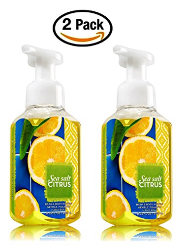 [Description] Bath and Body Works Sea Salt and Citrus Foaming Hand Soap - Italian Limoncello Collection Sea Salt and Citrus is a bright blend of zesty lemons_ sea salt & olive blossom. You receive TWO (2) Foaming Hand Soaps -- 8.75 fl oz each. The new_ premium formula in this Sea Salt and Citrus Foaming Hand Soap delivers a cloud of luxurious foam that transforms into a rich_ creamy lather to gently wash away dirt and germs_ while soothing Aloe and nourishing Vitamin E leave hands feeling soft_ smooth and lightly scented. If you like Bath and Body Works Kitchen Lemon_ Meyer Lemon_ or Limoncello you will LOVE this new Sea Salt and Citrus scent!