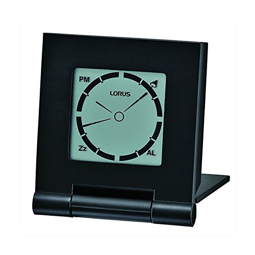 Black plastic Lorus digital watch. Grey dial. Alarm with repeater. Measures 7.1 X 6.3 X 1.5 cm. Certificate of authenticity.