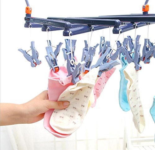 -. Title : GFYWZ Plastic 29 clip Roller Drying racks Windproof Portable Foldable Telescopic Multifunction Creative Magic Hangers