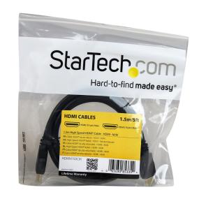 The HDMM150CM 1. 5m High Speed HDMI cable comes in a non-standard 5 foot cable length allowing for a convenient connection distance and enabling you to position your HDMI-enabled devices as needed. The cable features two gold-plated HDMI male connectors to provide a dependable HDMI to HDMI connection, while the unique cable length makes it perfect for watching videos from your laptop on your HDMI TV or for boardroom presentations when connecting your laptop to an HDMI-enabled projector.