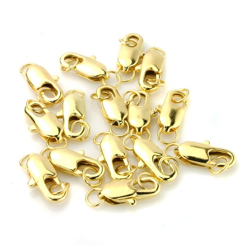 BEADNOVA 15pcs 14mm Gold Plated Jewelry Lobster Claw Clasps with Jump Ring for Jewelry Making with Container Box