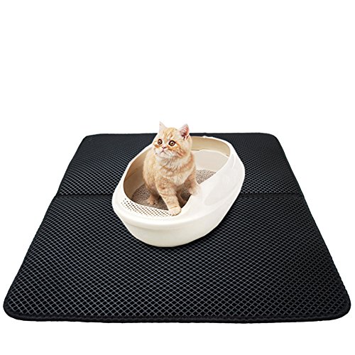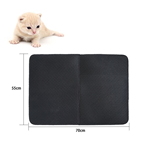 -. Title : Double Cat Litter Mat, Black Layer Honeycomb Mat Layer, Non-Toxic Soft Waterproof Litter-Trapping Repel Urine Waterproof