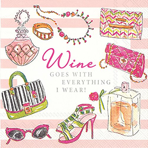 Ideal Home Range C712000 Rosanne Beck 20 Count Paper Cocktail Napkins, Wine Goes With Everything