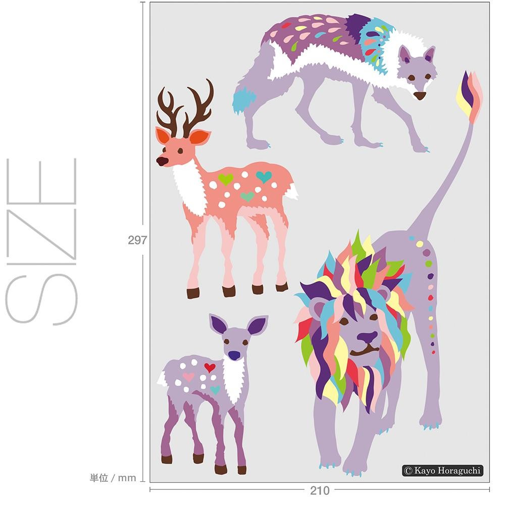 優しい表情の動物たちがとても可愛らしいウォールステッカーです。カラフルなのに落ち着きのある色遣いなので、シックなお部屋やシンプルなお部屋にも取り入れていただきやすくなっています。 |