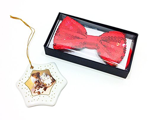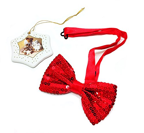 Men's Holiday Red Sequin Sparkly Banded Formal Bow Tie & Porcelain Tree Ornament