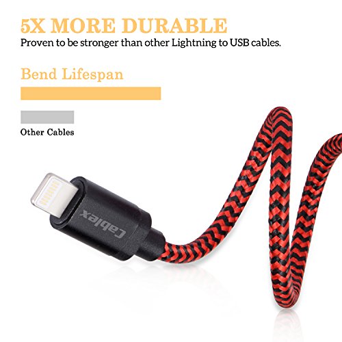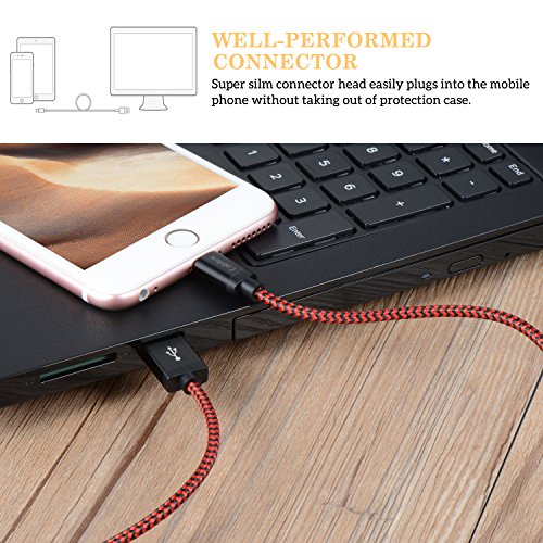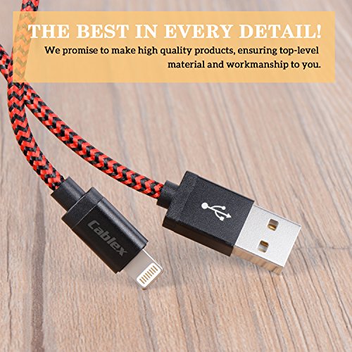 Lightning Cable, Cablex iPhone Charger 3Pack 10FT Ultra Long Nylon Braided USB Cable Cord Compatible with iPhone7 7Plus 6s 6sPlus 6 6Plus 5 5s 5c SE iPad iPod & More (Redblack)