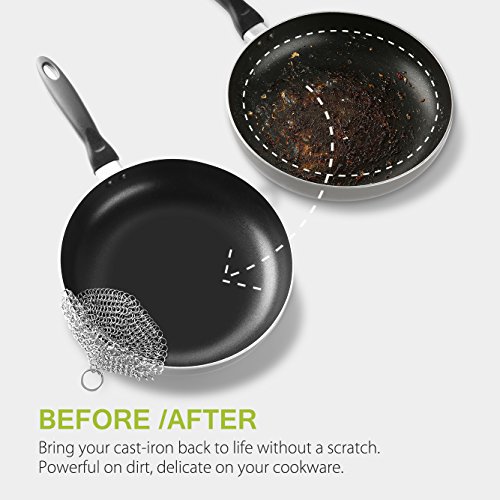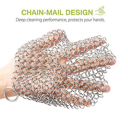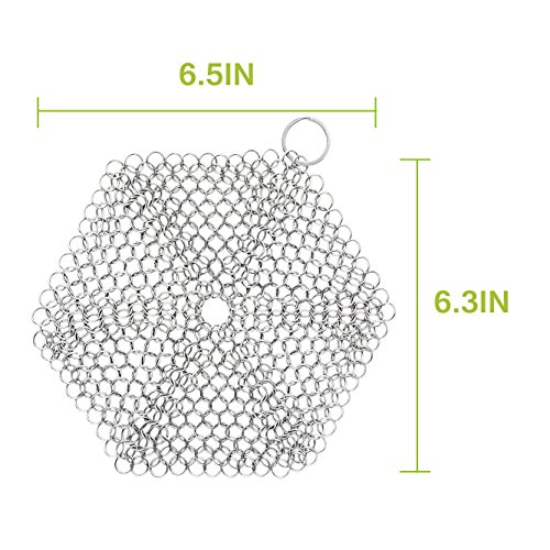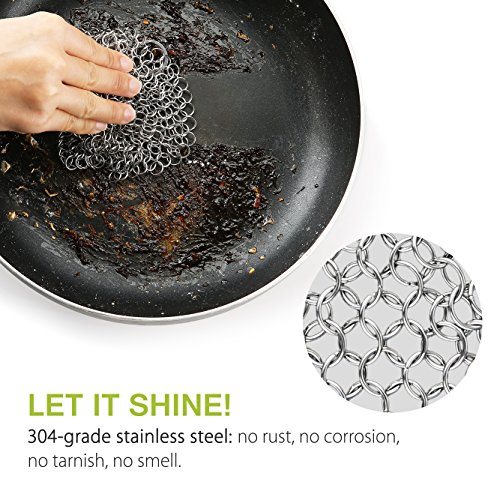 The Chainmail Scrubber is handcrafted from premium 304-grade stainless steel,It is ideal for cleaning all your cast iron cookware, such as cast iron pans , pre seasoned cast iron , skillets, dutch ovens , camp chef griddles , waffle irons and so on. Boasting unmatched durability and built to last as long as your cast iron products and stain steel product .