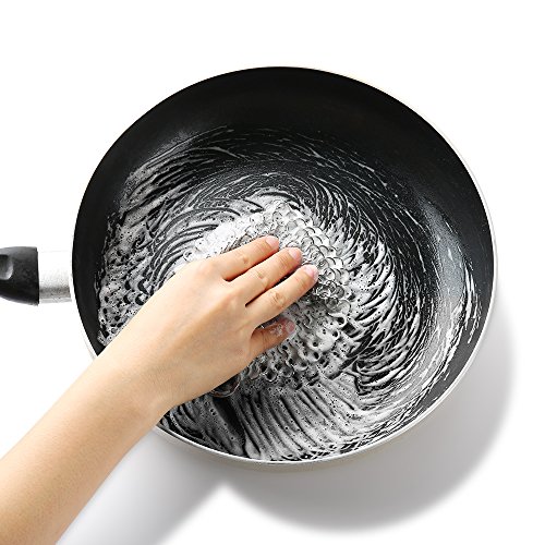 4.EASY TO BE CLEANED: No soap or harsh detergent needed. Simply rinse it when scrubbing is complete, cooked on residue will release quickly and easily. You can also toss it in the dishwasher to get the job done.