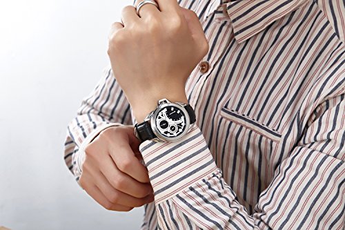 -. Title : BUREI® Men's Stainless Steel Dress Watch with Black Leather Band