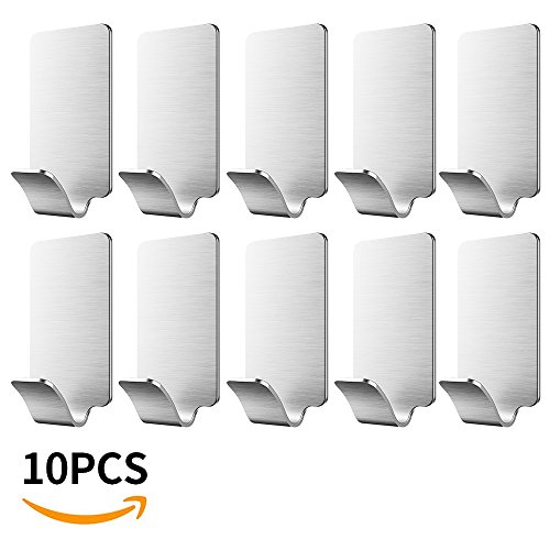 Wall Hooks Hangers , Ultra-Strong 304 Stainless Steel Waterproof Hanger for Robe, Coat, Towel, Keys, Bags, Home, Kitchen, Bathroom (Set of 10)