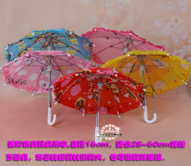 Children's toys every family mini-simulation umbrella (directly about 16 cm, can be combined, with the actual design of the same umbrella) for 28-60 cm dolls decorated with 30 cm Barbie and other dolls with the ratio seems a bit too large, But still very cute. Some are with a pattern, some are not, more style, random delivery does not pick money.