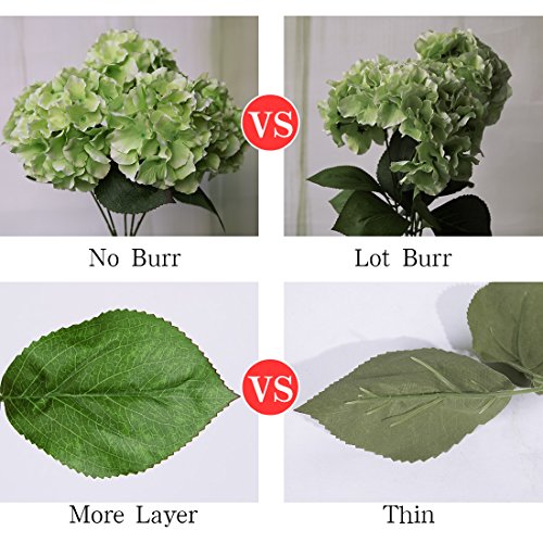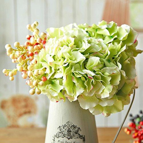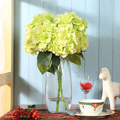 Luyue 5 Big Heads Artificial Silk Hydrangea Bouquet Fake Flowers Arrangement Home Wedding decor (Green)