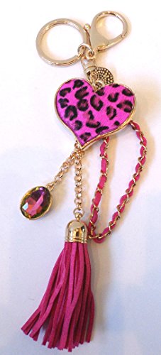 Product Description Up for your consideration is a leopard fur heart dangle with tassel key chain. It measures approximately 8.25" in length. Please note, there is a large lobster clasp and a key ring for easy toggle between purses. 0