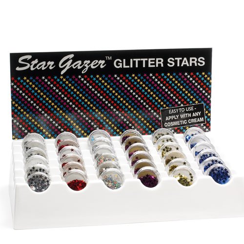 -. Binding : Misc. -. Brand : Stargazer EnterP.R.Ises -. Color : Spectrum -. EAN : 5036469042072 -. Feature : Dazzling glitter stars for the face and body / You can apply the glitter stars to your face or body using moisturising cream or a little vaseline. / Easy to apply and wash off / Size: 2g -. IsAdultProduct : 0 -. Label : Stargazer -. Manufacturer : Stargazer -. MPN : sgs132-spectrum -. PackageQuantity : 1 -. PartNumber : sgs132-spectrum -. ProductGroup : Beauty -. ProductTypeName : BEAUTY -. Publisher : Stargazer -. Size : 2g -. Studio : Stargazer -. Title : Stargazer Spectrum Face and Body Glitter Stars Rave Festival