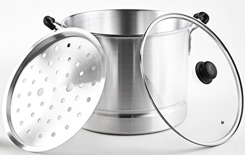 Get steamed! Introduce new ethnic flavors and tastes into your kitchen. The IMUSA Tamale/Seafood Steamer is ideal for keeping tamales, seafood, veggies and other culinary creations out of hot water! Just fill the bottom of the pot with water, broth or wine and use the included tray to rest the foods to be steamed. Control your cooking without losing steam thanks to the glass lid. If you are new to making tamales, or steaming seafood-this is a tasty place to start.Feature