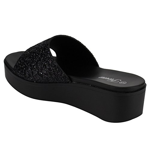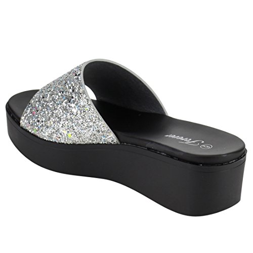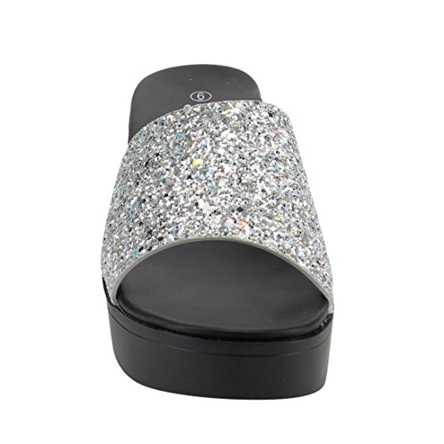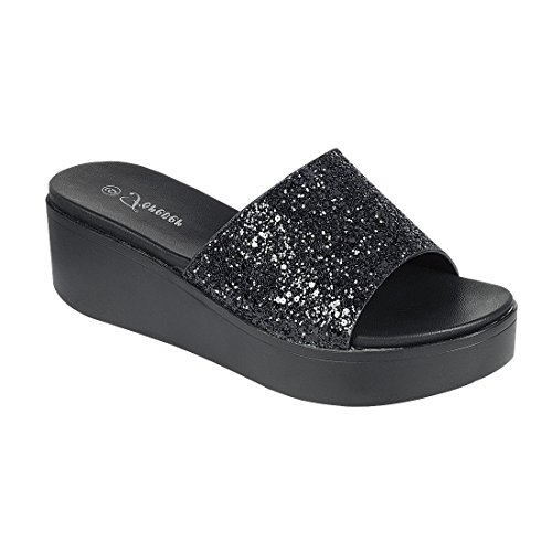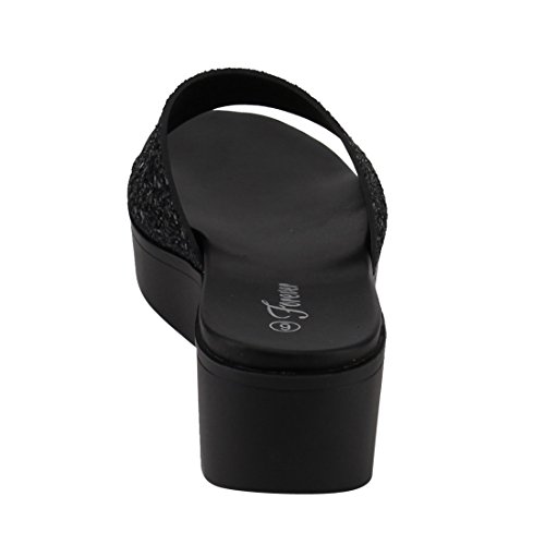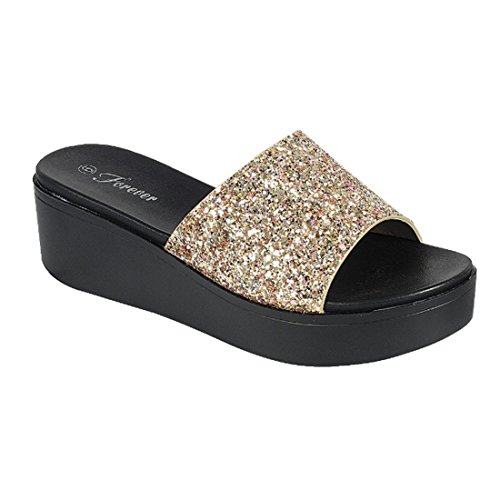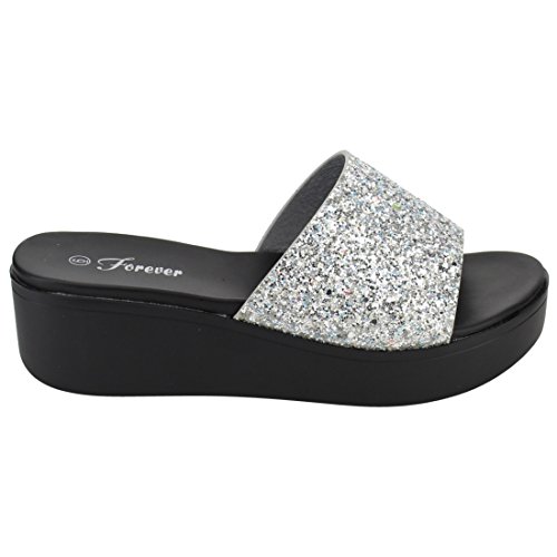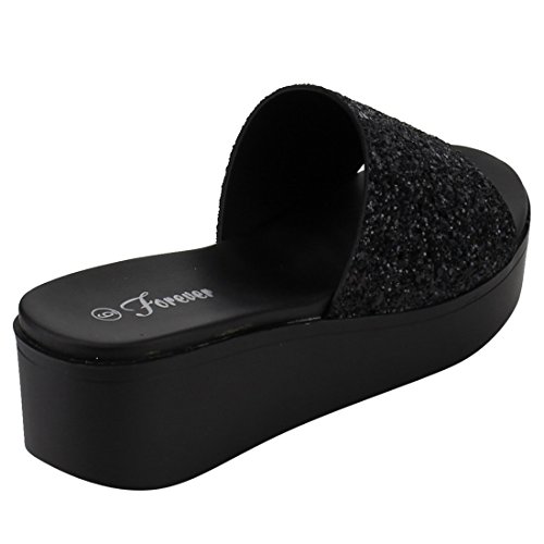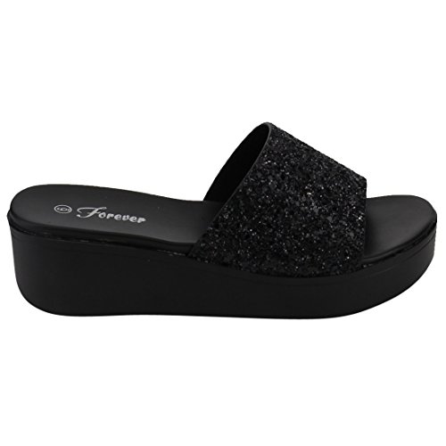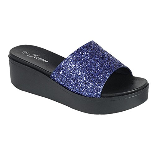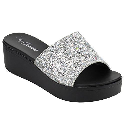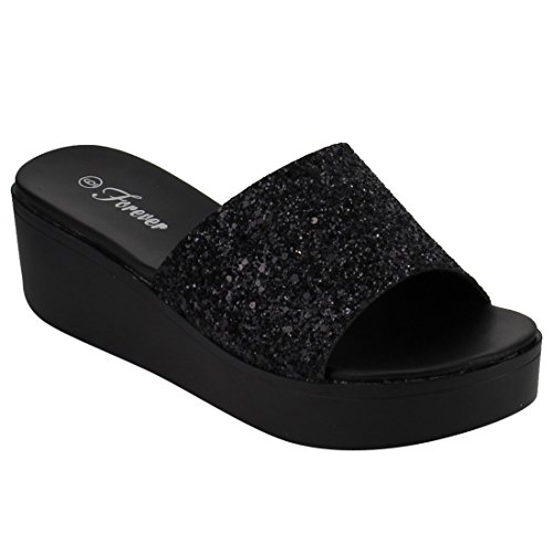 FOREVER FQ46 Women's Glitter Wide Band Wedge Heel Slide Sandals