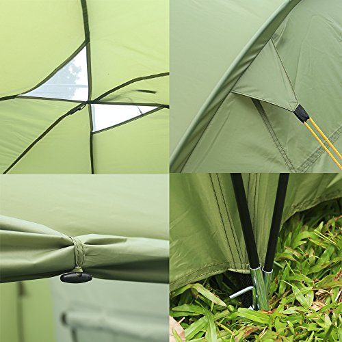 Strong Construction: breathable & lightweight 190T PU2000mm polyester flysheet and 190T PU 800mm polyester mesh inner, it is durable, portable and fashionable enough for your camping hiking backpacking tent demand.