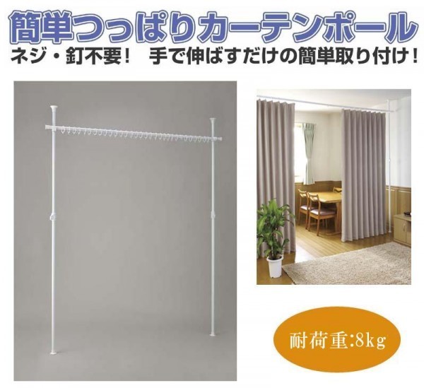 ネジ・釘不要!手で伸ばすだけで簡単に取り付けられるカーテンポールです。カーテンは付属しておりませんので、お好みのカーテンをお買い求め下さい。 |