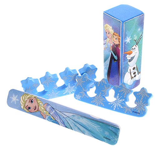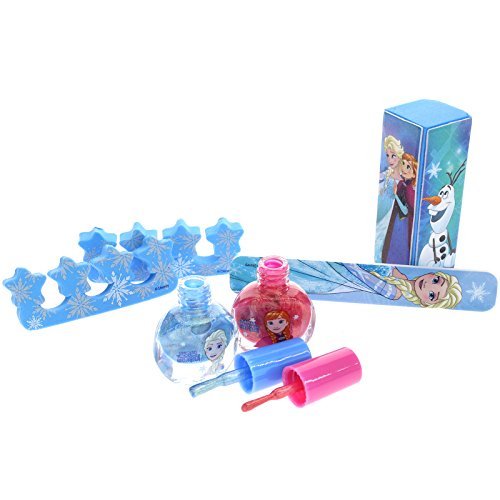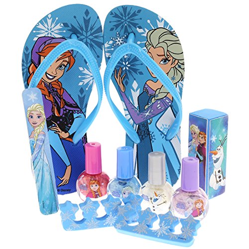 Treat your child to a day at the spa with Elsa and Anna. This set comes with a nail buffer, nail file, 4 different colors of nail polish, two toe separators, and a pair of adjustable pedicure sandals. The water-based, non-toxic polishes keeps them safe during the fun. Perfect as a birthday party or holiday gift. See images and bullets for more details.