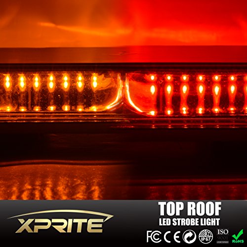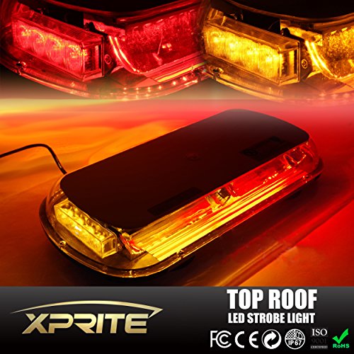 Xprite 44 LED 17 Inch High Intensity Law Enforcement Emergency Hazard Warning Flashing Car Truck Construction LED Top Roof Mini Bar Strobe Light with Magnetic Base (Red & Yellow/Amber)