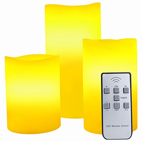 Timer Flameless LED Candles with Remote Control Set of 3 Scented WAX Pillar Flickering Battery Operated Electric Candles